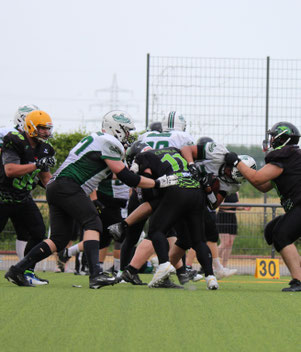 gegnerische Offense in ihrem ersten Drive in Schach und konnte das versuchte Fieldgoal blocken. Auch den zweiten Drive der Mülheimer konnte die